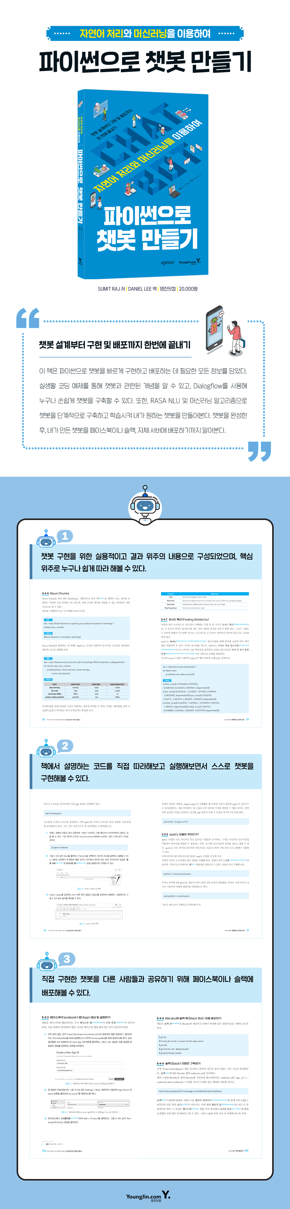- 파이썬을 이용한 실습으로 누구나 손쉽게 자신의 챗봇을 구현할 수 있다.