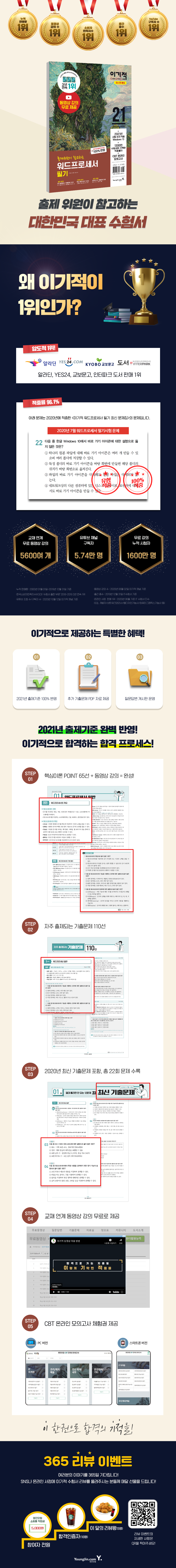『2021 이기적 워드프로세서 필기 최신문제집』은 2021년의 변경된 출제기준에 따른 워드프로세서 필기 시험을 준비하는 수험생을 위한 기출문제집으로서 총22회의 풍성한 모의고사+기출문제 구성과 정답해설을 분권하여 준비하였습니다.