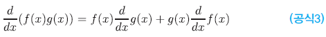 함수의 곱 f(x)g(x)는 다음과 같이 미분할 수 있습니다.