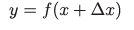 함수 y = f(x) 에서 x의 미소한 변화량을 x로 하면 x를 Δx만큼 변화시킬 때의 y 값은 다음과 같습니다.