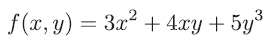 예로서 다음과 같은 변수 x, y를 가진 함수 f(x, y)를 생각해 봅시다.
