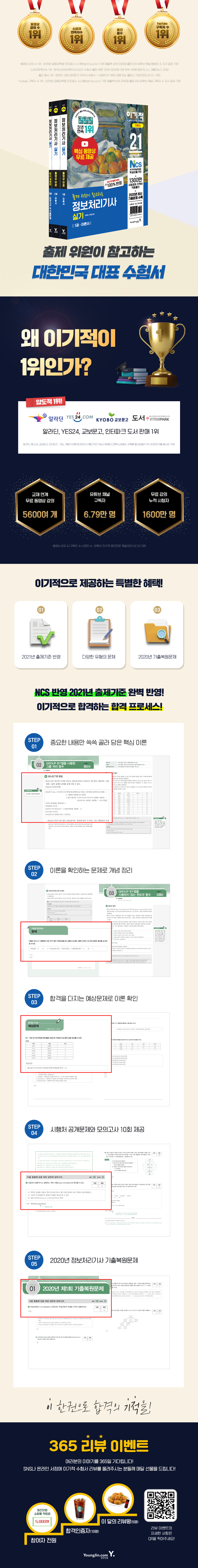 이기적 정보처리기사 실기 도서가 새롭게 개편되었습니다. 그동안 독자분들의 의견과 출제 경향을 분석하여 처음부터 끝까지 전면 개정되었습니다. NCS 모듈 내용을 바탕으로 한 핵심 이론과 함께 풀어보는 ‘이론을 확인하는 문제’와 ‘합격을 다지는 예상문제’뿐만 아니라 ‘시행처 공개문제’, ‘모의고사 10회’, ‘2020년 기출복원문제 4회’까지 아낌 없이 모두모두 드립니다. 출간된 후 진행되는 다양한 이벤트까지! 이기적과 함께 2021년에는 정보처리기사 자격증을 취득해 보세요!