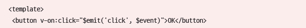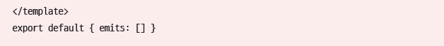 만약 미리 정의된 이벤트명을 emits 옵션에 선언하지 않을 경우, 같은 이름의 네이티브 이벤트가 존재한다면 네이티브 이벤트를 호출한다. 예를 들어, 다음과 같이 emits 옵션을 비워두고 click 이벤트를 발생시키면 Vue의 이벤트가 아닌 네이티브 이벤트로 인식된다.