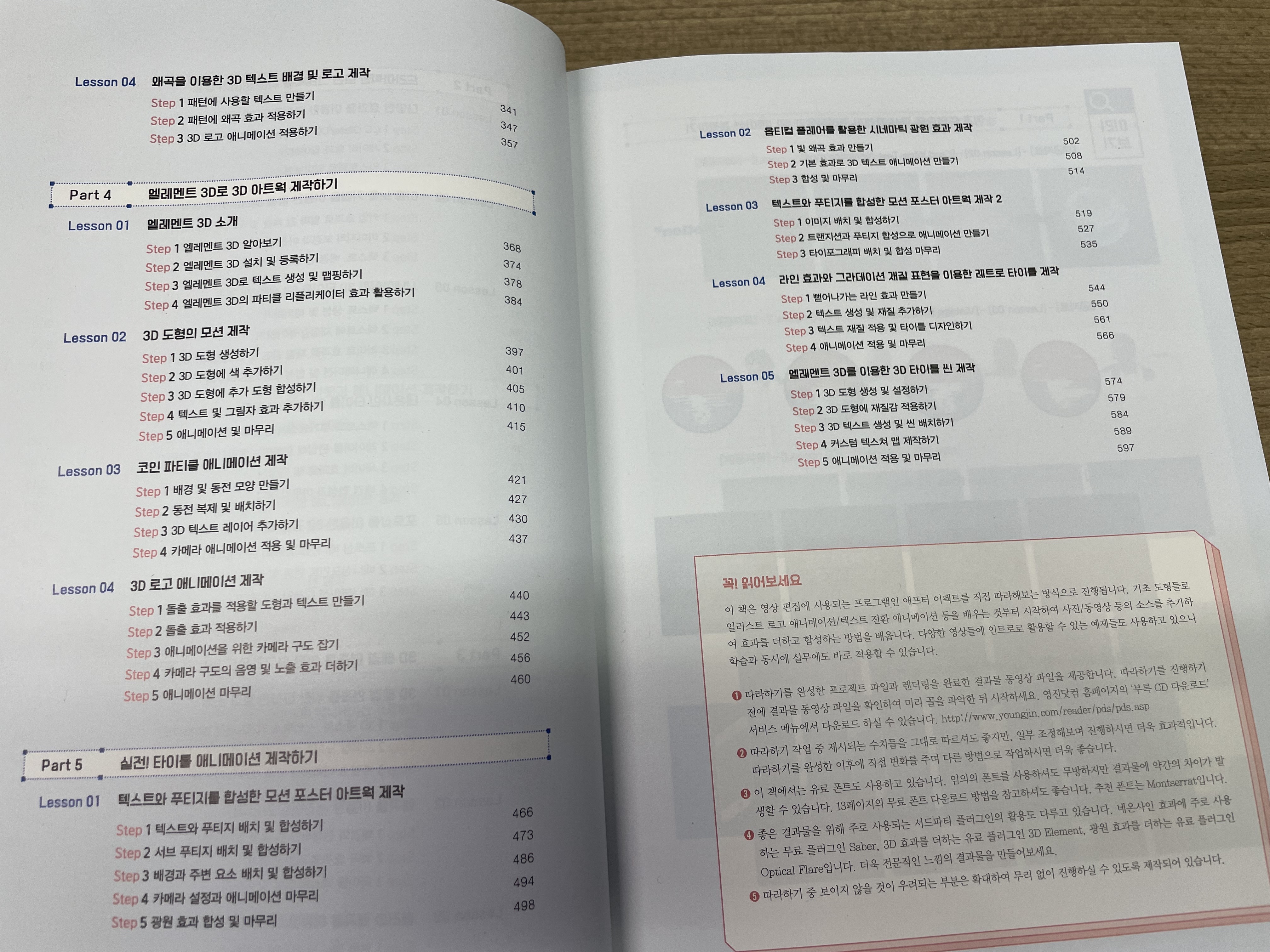 현재 시중에 나와있는 모션그래픽 학습 도서는 대부분 이론적인 부분을 큰