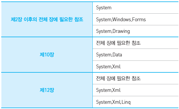 *참고 : <그림으로 배우는 C#> 책의 샘플 프로그램은 다음 참조를 추가합니다.