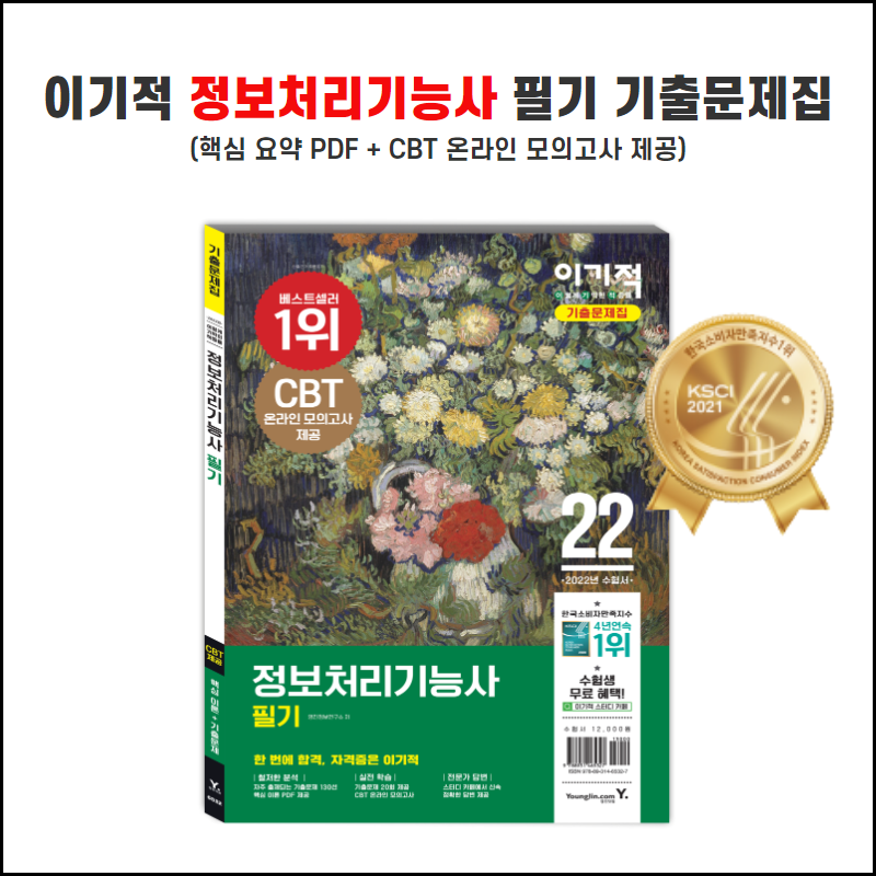 본 도서는 정보처리기능사 필기 시험을 준비하는 수험생이 이론을 충분히 숙지한 후 시험 전 마지막으로 실력을 점검할 수 있도록 최신 기출문제 20회분과 핵심이론(PDF 제공)을 알차게 엮은 기출문제집입니다. 20회의 기출문제를 통해 최근에 시행됐던 문제부터 과년도 문제까지 출제 경향을 한눈에 살펴볼 수 있습니다. 또한 ‘자주 출제되는 기출문제 130선’은 수험생들이 절취하여 들고 다니면서 언제 어디서나 단골 기출문제를 암기할 수 있도록 하였습니다. 그러므로 <2022 이기적 정보처리기능사 필기 기출문제집>은 수험생을 위한 맞춤 도서로서 합격의 지름길 역할을 톡톡히 할 것입니다.