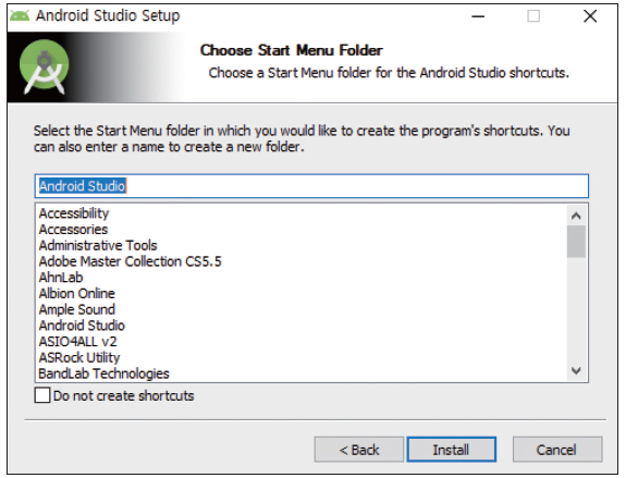 시작 메뉴 폴더 선택에서 [Install] 버튼을 누릅니다.