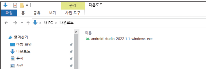 다운로드가 완료되었습니다. 다운로드한 파일을 마우스로 클릭하여 실행합니다.