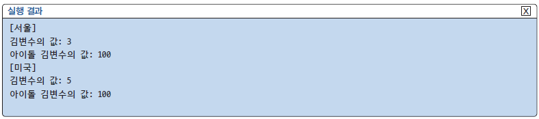 → 16번 줄: seoul이라는 함수에서 kimByunsoo라는 변수를 정의합니다. 이 변수는 seoul 내에서만 유효합니다.