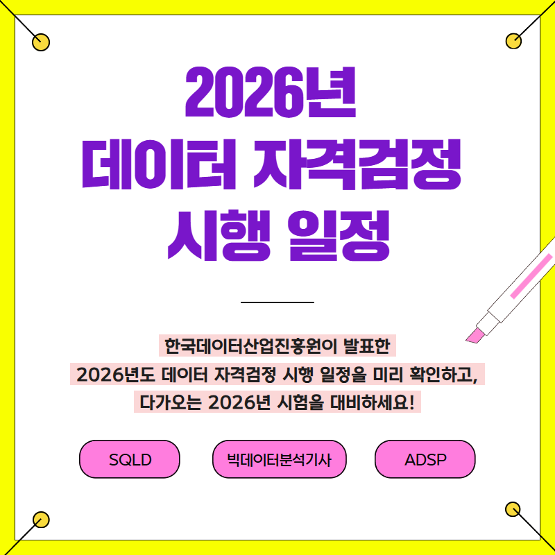 2026년 빅데이터분석기사(필기,실기)/SQLD/ADsP 시험일정 안내